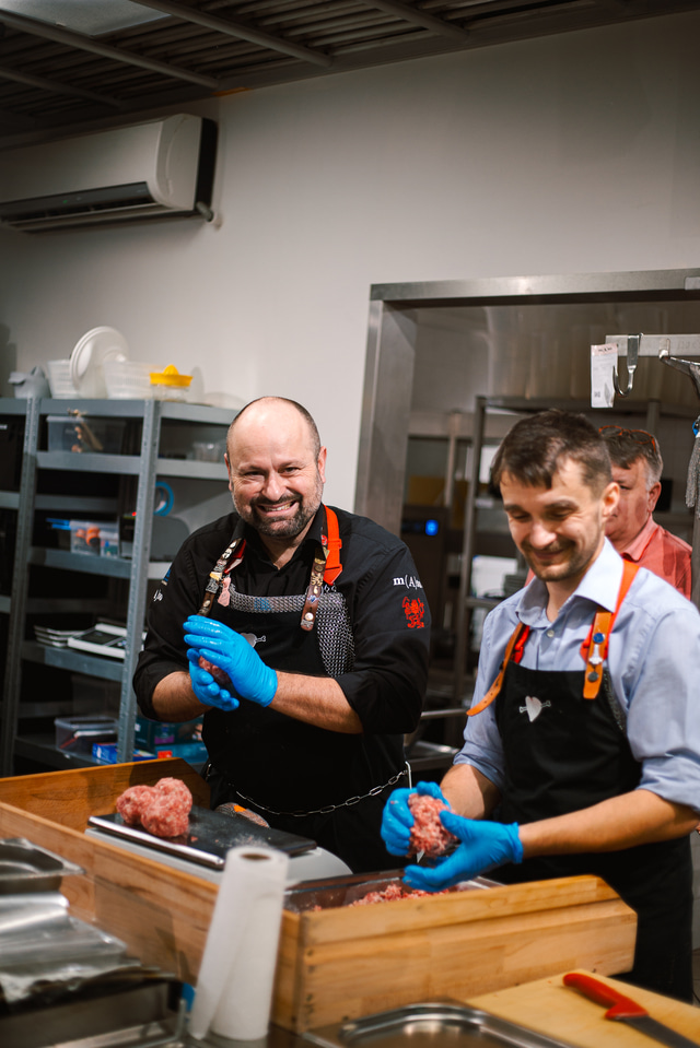 Master butcher František Kšána presented his craft right down to the marrow. In an intensive workshop lasting several hours, he broke down an entire beef hindquarter and explained in detail the character of each cut and how it is traditionally and best prepared in Czech cuisine.