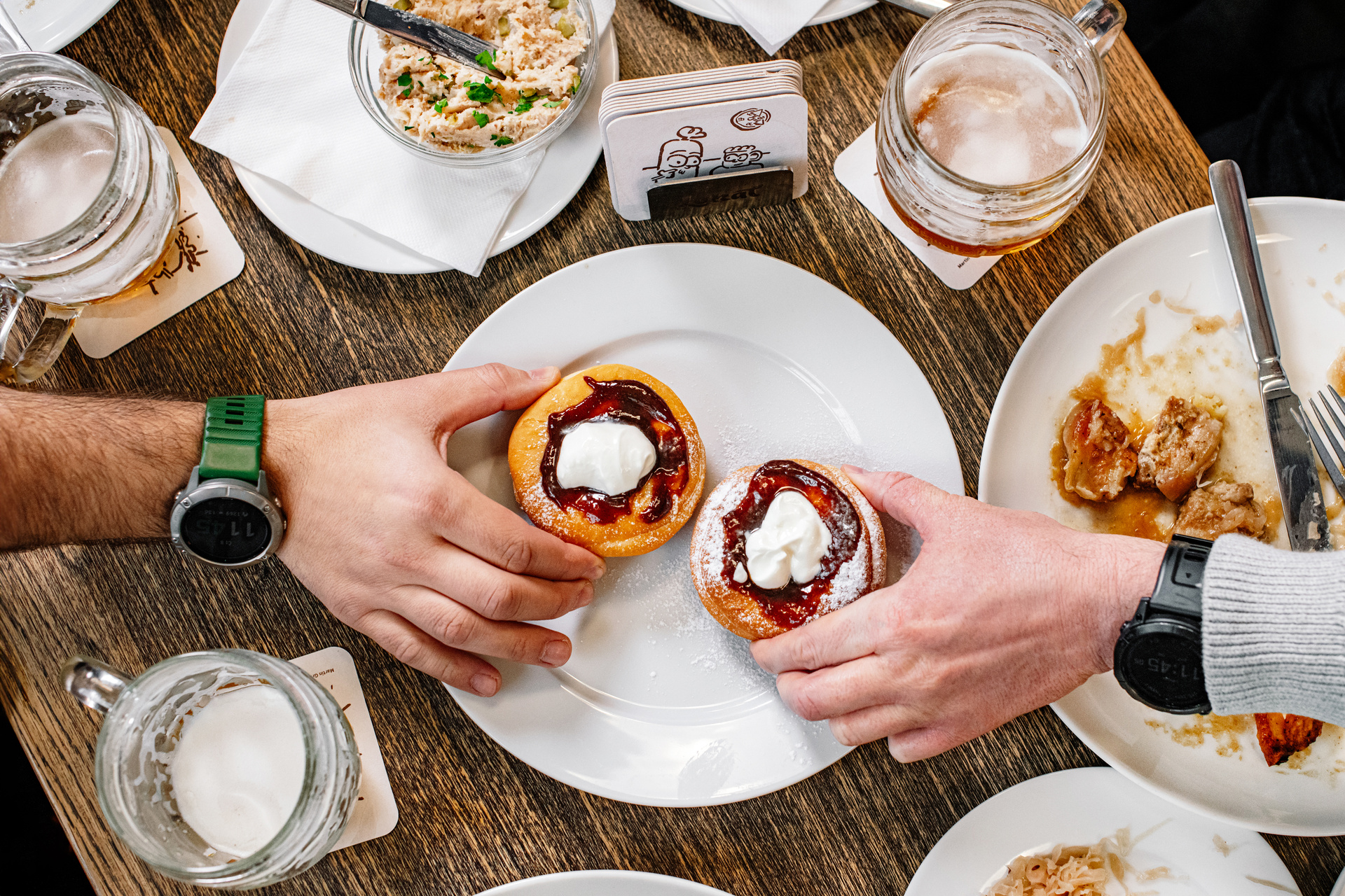 🍺 Big green and pear for the price of a small, half the size of the steak tartare, half the size of the meatloaf, free popcorn