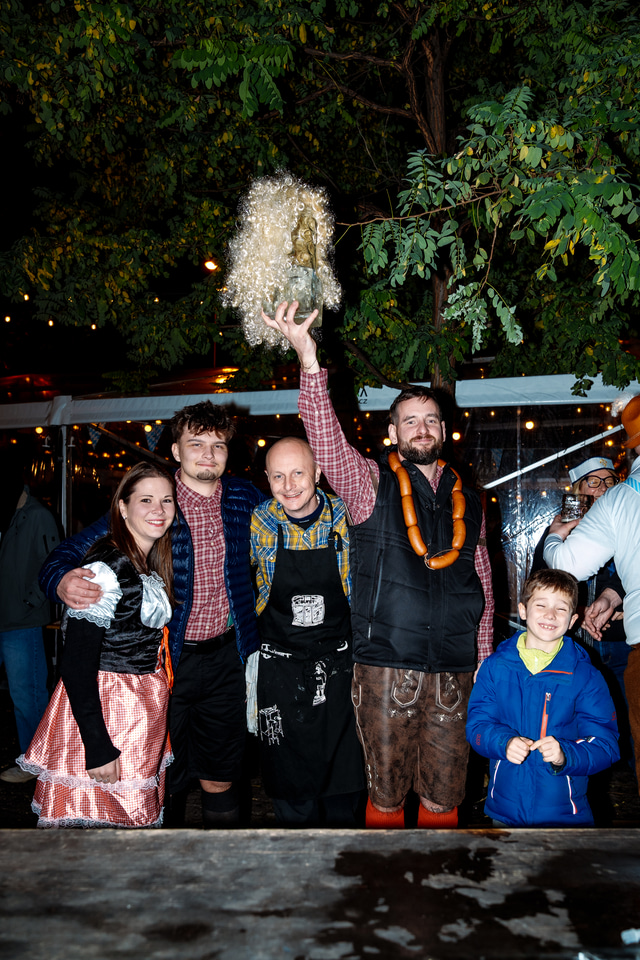 Bufet treated guests to Oktoberfest-themed snacks like Leberkäse in a bun. Beer from the Dva Kohouti brewery was, of course, poured into classic one-liter mugs. A DJ and an MC kept the atmosphere lively, and there was even a heated tent for anyone feeling chilly. Like every year, the event featured fun team competitions — with a few brand-new challenges added this time!